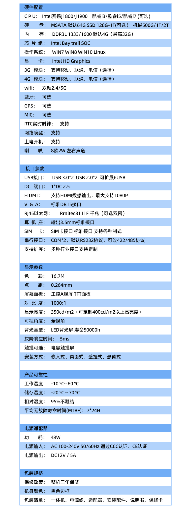 外嵌式X86工業一體機10.1寸12.1寸15.6寸21.5寸工控一體機