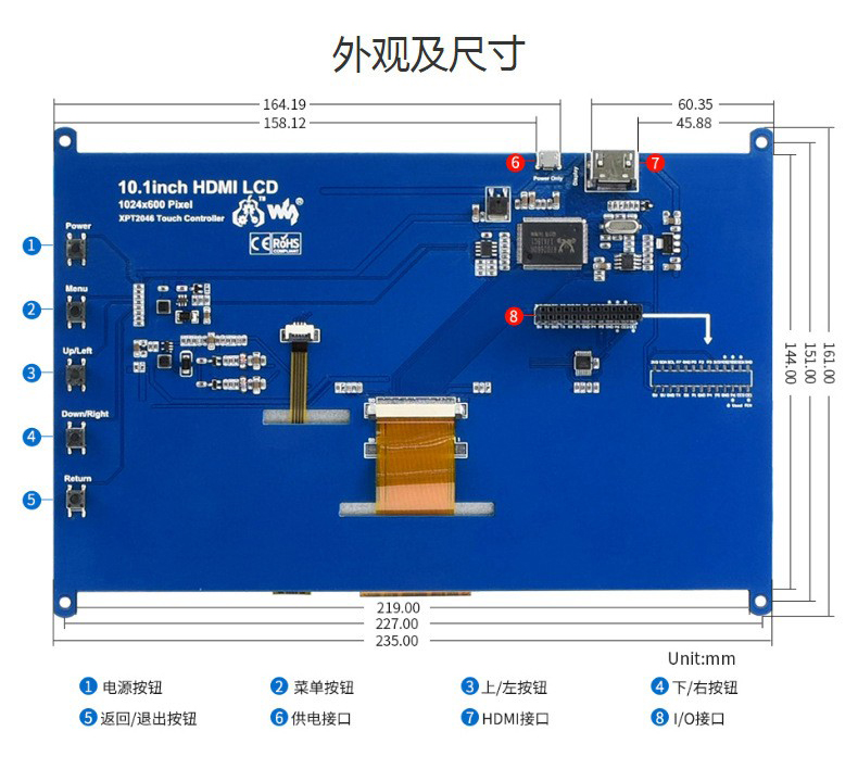 樹莓派10.1寸電容觸控顯示屏HDMI接口1024*600分辨率