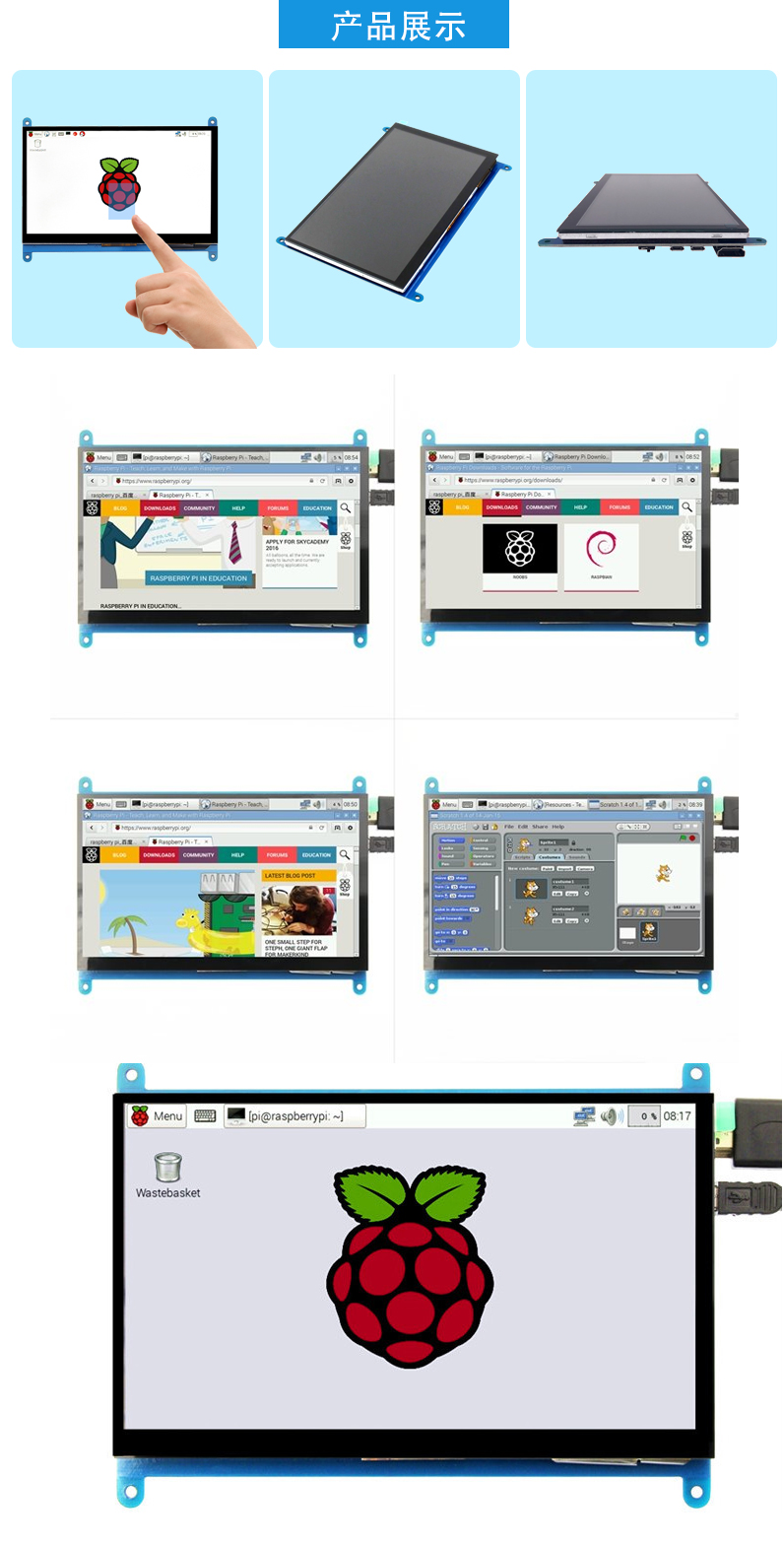 樹莓派1.44/2.8/3.5/5.0/7寸/10.1寸電容觸控顯示屏HDMI接口IPS屏