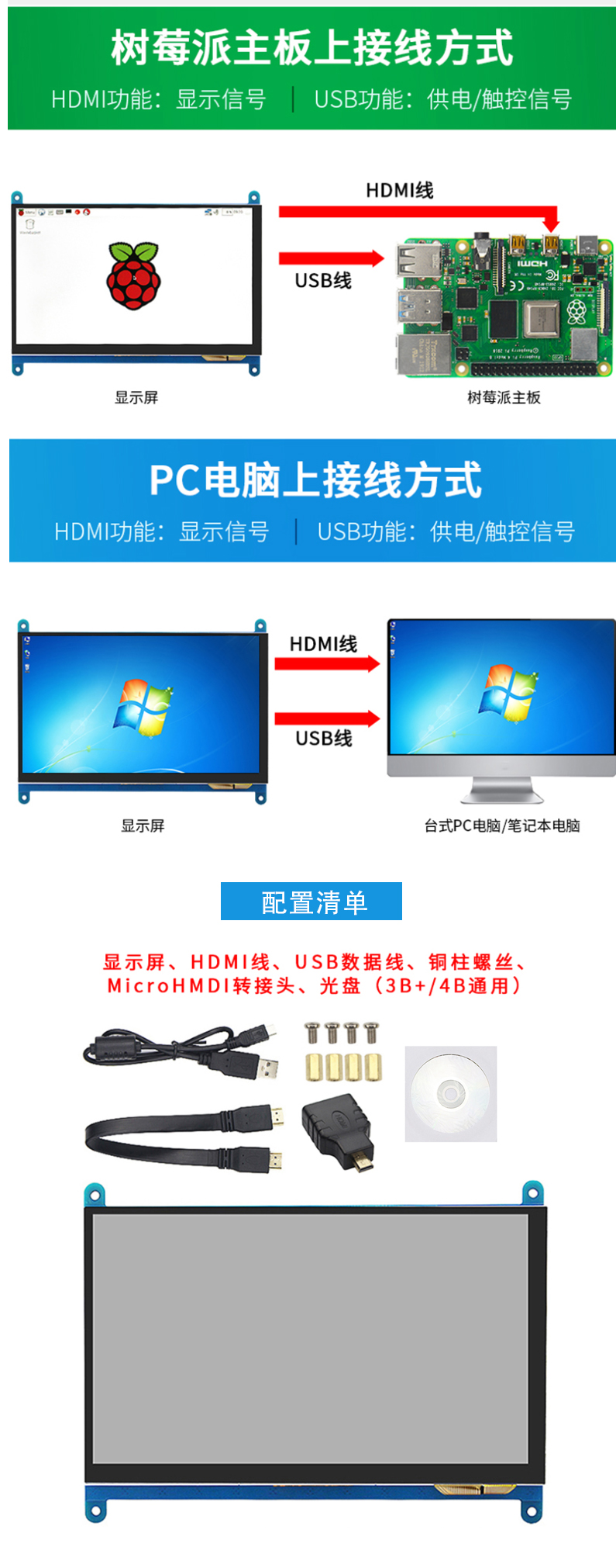 樹莓派1.44/2.4/2.8/3.5/4/5/7寸/10.1寸電容觸控顯示屏HDMI接口